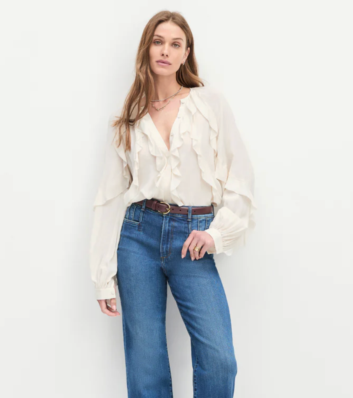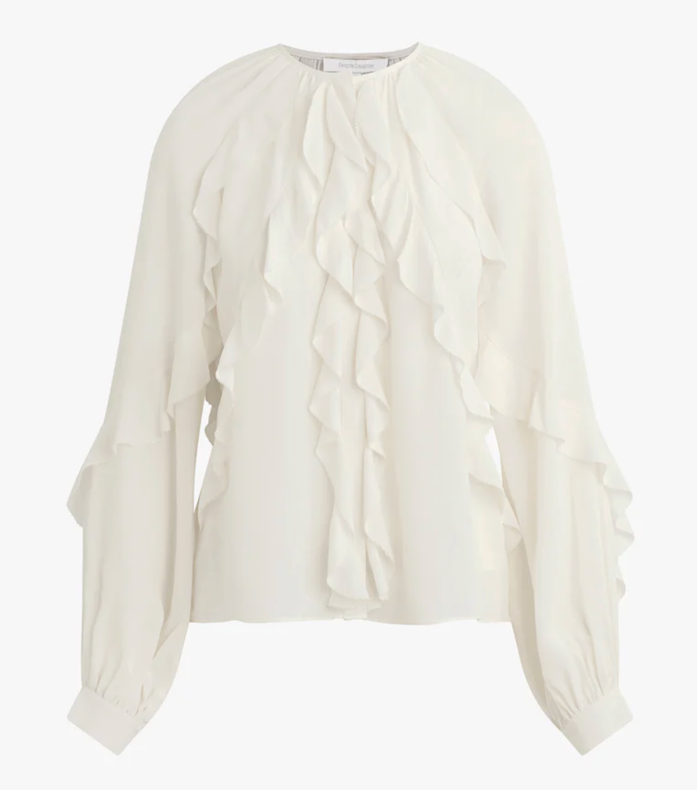 Romantic and soft with just the right amount of ruffles. Full sleeves, crew neckline, and a relaxed shape in airy viscose.
