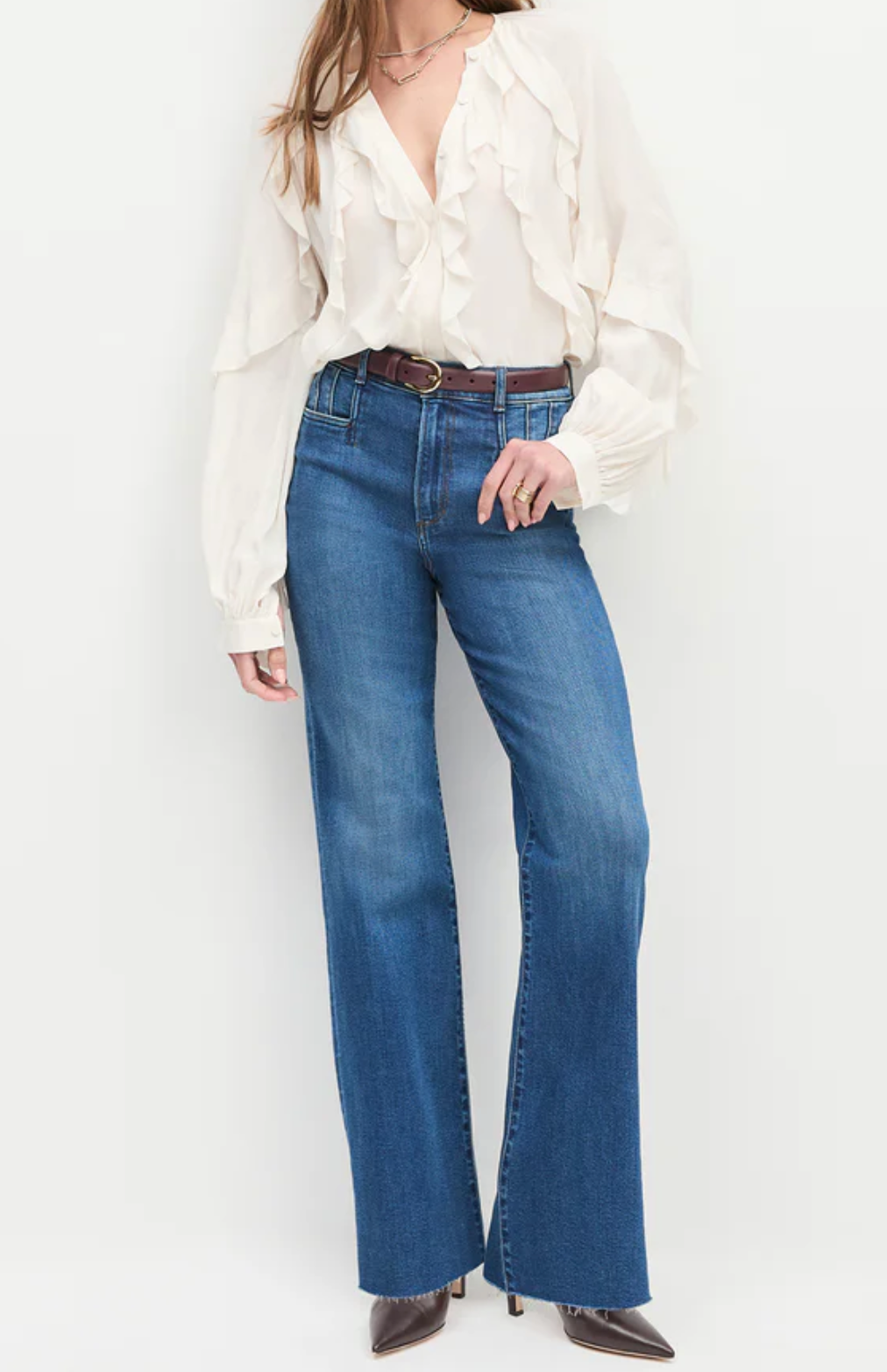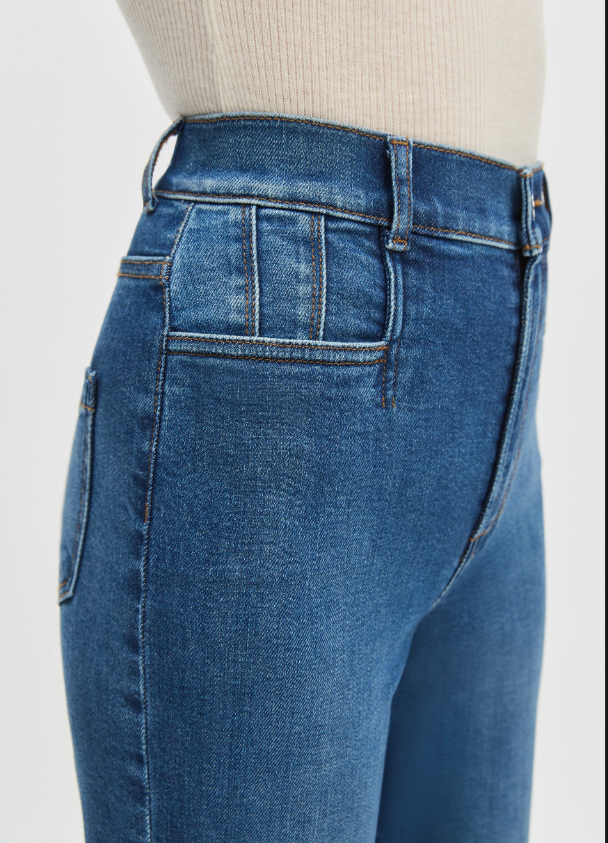 Details matter. The Jordie Super High Rise has all the right ones to make it the most flattering and favorite fit. A medium-blue wash, wide legs, a 12" high waist and 32" inseam. Plus, heavyweight denim with extra stretch for a slimming silhouette and front pocket stitching for added design.