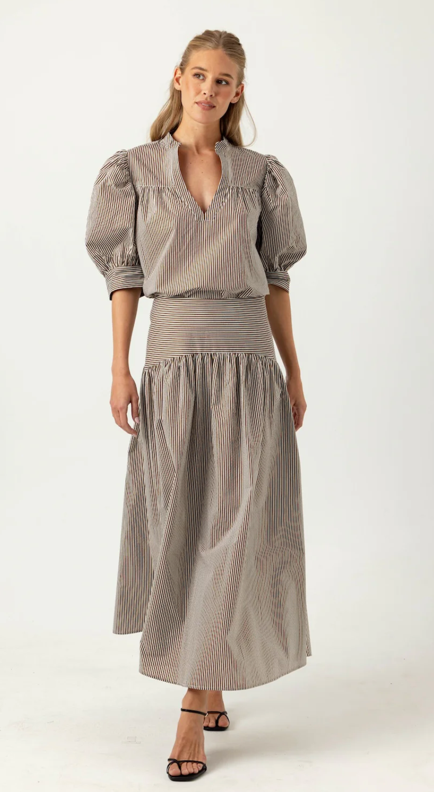 - Soft gathers at the waistband create an elegant drape and a full fit through the body